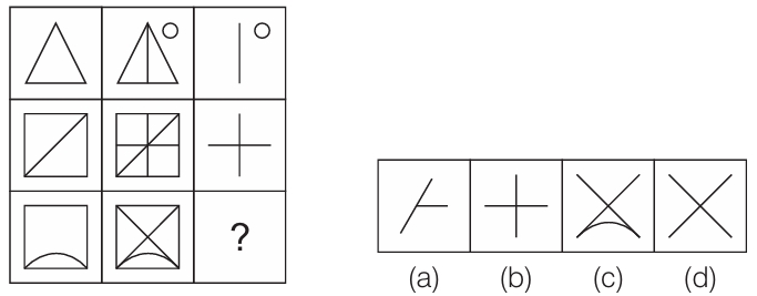 a part of figure is missing. Find out from the given (a), (b), (c) and (d), that can replace the ‘?’